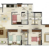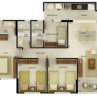 Apartamentos com final 03 e 06 possuem sala de jantar e estar, 03 quartos, sendo 01 suíte, varanda gourmet, dependência completa de empregada, cozinha, área de serviço, área técnica para ar-condicionado split e ainda 02 vagas de garagem.