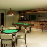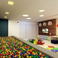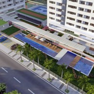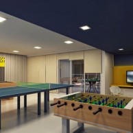 Sala de administrativoo, espaço mulher, praça gourmet com churrasqueira e forno de pizza, sala de estudo, terraço, copa, salão de gala, 02 espaços gourmet, 03 salas de estar social, 03 piscinas (01 raia, 01 baby e 01 infantil), deck molhado, deck de madeira, eclusa de segurança, bar, snack bar, spa com sauna, ducha e sala de massagem, espaço relax, espaço fitness, espaço kids, playground, amarelinha, salâo de festa infantil, espaço teen, lan house, WC P.N.E., masculino e feminino, pista de corrida, espiribol, quadra streetball, mini campo e quadra poli-esportiva.