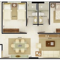 Apartamentos com final 01 e 08 possuem sala de jantar e estar, 02 quartos, sendo 01 suíte, varanda, cozinha, área de serviço, área técnica para ar-condicionado split e ainda 01 vaga de garagem.
