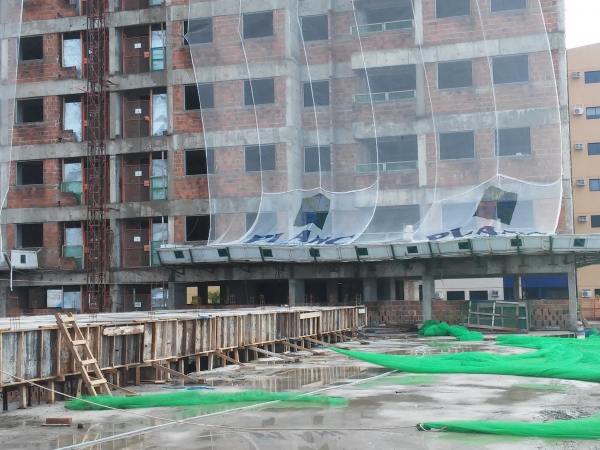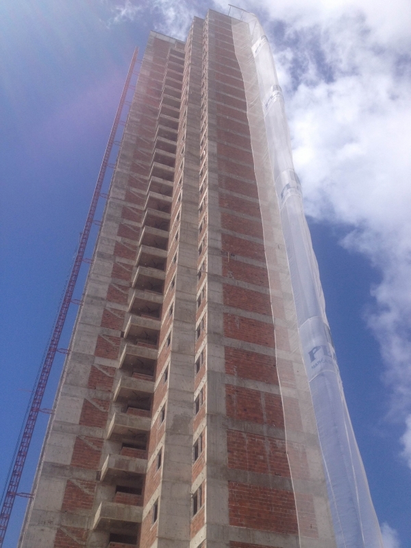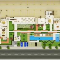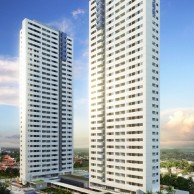 02 torres idênticas, com 30 pavimentos cada torre, mais 02 pavimentos subsolo, destinados a estacionamento e áreas técnicas, 01 pavimento térreo, destinado a estacionamento e lazer e 01 pavimento mezanino, destinado a lazer. 03 elevadores por torre, hall dos elevadores, escada, mara, casa de lixo, casa de gás, guarita, WC guarita, acesso social, WC P.N.E. masculino e feminino, home.